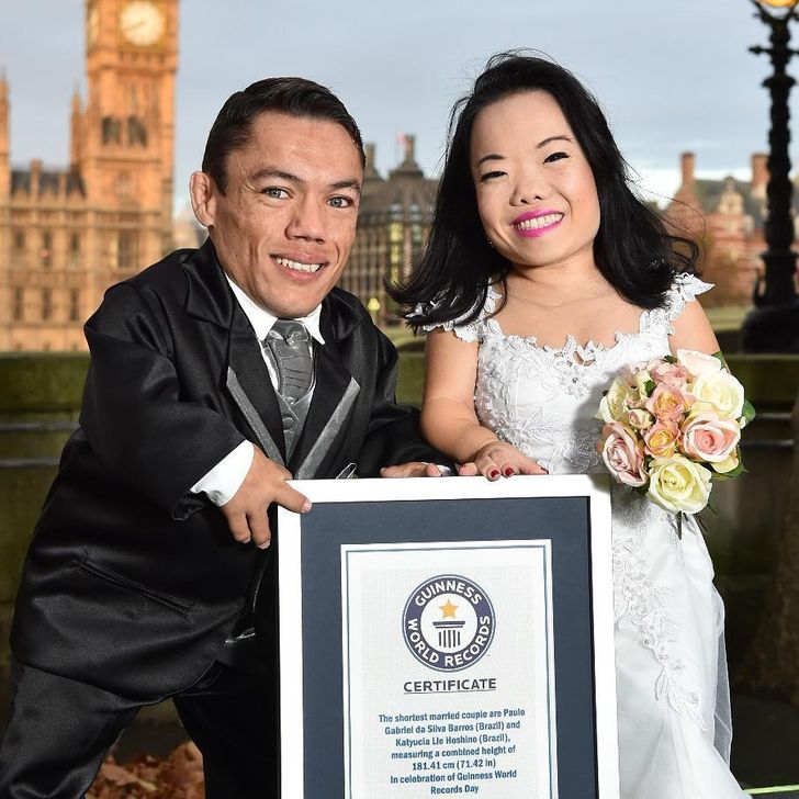 Paulo Gabriel da Silva Barros na Katyucia Lie Hoshino, bombi bo muri Berezile, bapima uburebure bwa cm 181.41 , baciye agahigo ko kuba abakundana bagufi cyane ku isi.