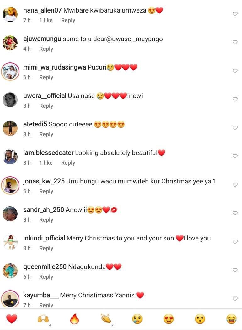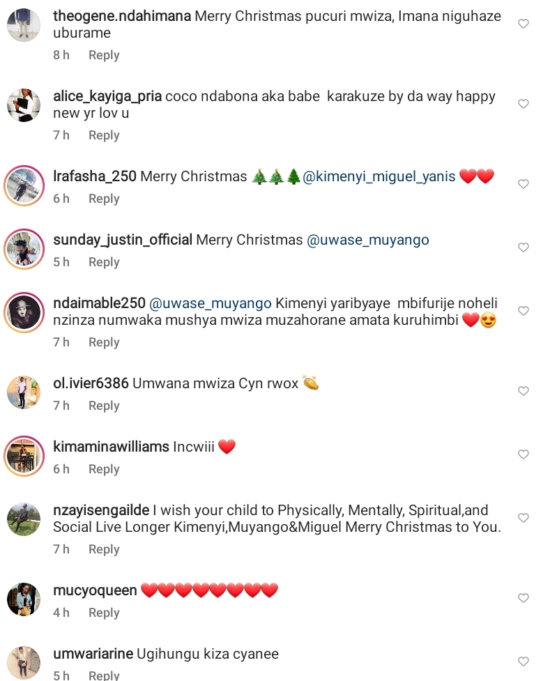 Kuri uyu munsi wa Noheli tariki 25 Ukwakira 2021 ibyamamare bitandukanye byagiye byifuriza abafana babo Noheli nziza banashyira hanze amwe mu mafoto agaragaza imiryango yabo.Muri bo Miss Uwase Muyango na we ntiyacitswe dore ko yashyize hanze amafoto ateye ubwuzu y’umwana w’imfura ye yabyaranye na Kimenyi Yves maze azamura amarangamutima y’abatari bake aho bamweretse ko bamukunda kandi bamwishimira cyane, ndetse bamwifuriza Noheli nziza.