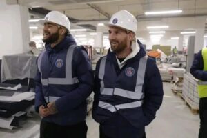 Byari udushya ubwo abakinnyi b’ikipe ya Paris Saint Germain bagaragaraga bambaye imyenda y’abubatsi.