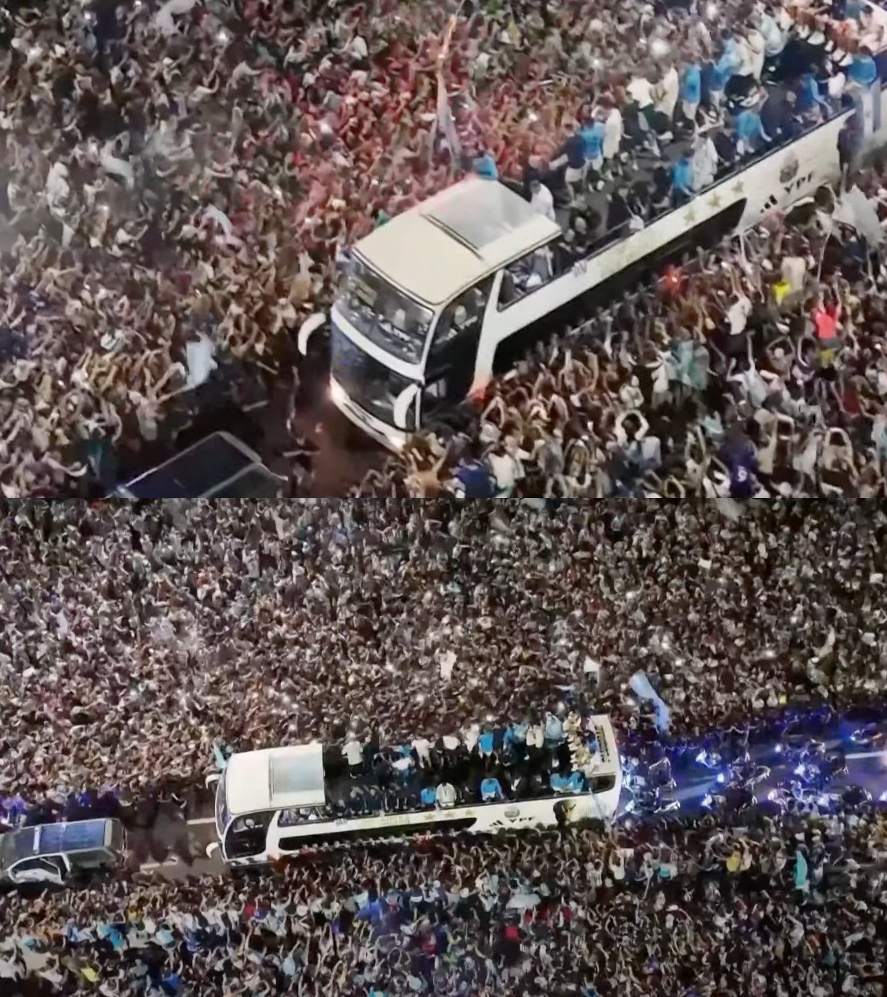 Nyuma yo gusohoka mu ndege abagize ikipe y’Igihugu ya Argentine batambutse ku itapi itukura bari bateguriwe, basohorera mu modoka nini cyane ifunguye hejuru bari bateguriwe kugira ngo bayifashishe batambagiza Igikombe cy’Isi baheruka kwegukana bacyereka abaturage.