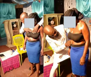 Kubera ko umugore yari ababaye ashaka gukira, yemeye akuramo imyenda imbere ya pasiteri hanyuma pasiteri aratangira amusukaho amavuta atangira kugenda amusiga neza ahera kunda azamura mu mabere.