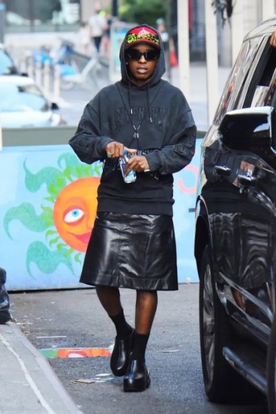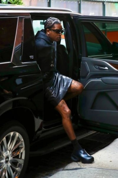 ASAP Rocky uherutse kubyarana n’umugore we Rihanna, yagaragaye yambaye ingutiya ikoze mu ruhu arimo yitemberera umujyi wa New York nta kibazo afite abamubonye induru bakayiha umunwa.