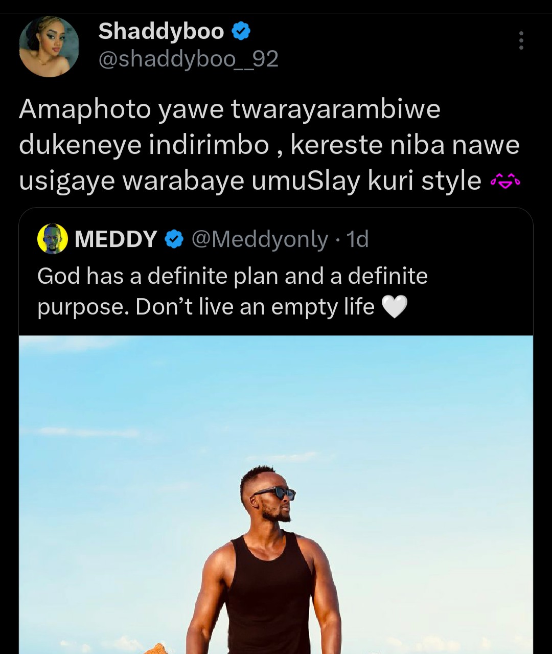 Abinyujije ku rukuta rwe rwa X yahoze yitwa Twitter, Shaddy Boo yibasiye umuhanzi Meddy.