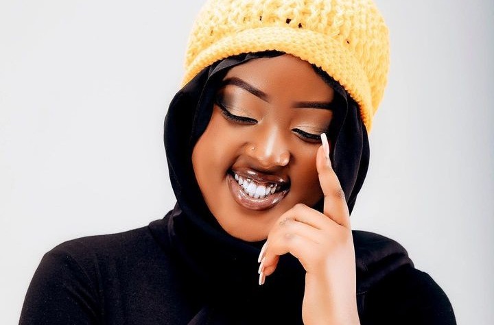Amafoto y’Umukundwa Cadette yambaye akajipo kagaragaza ibibero bye yakinze n’akandi kantu gato mu gituza akomeje kurikoroza