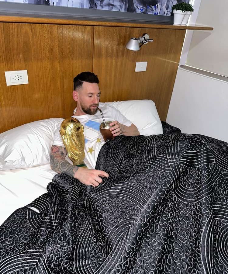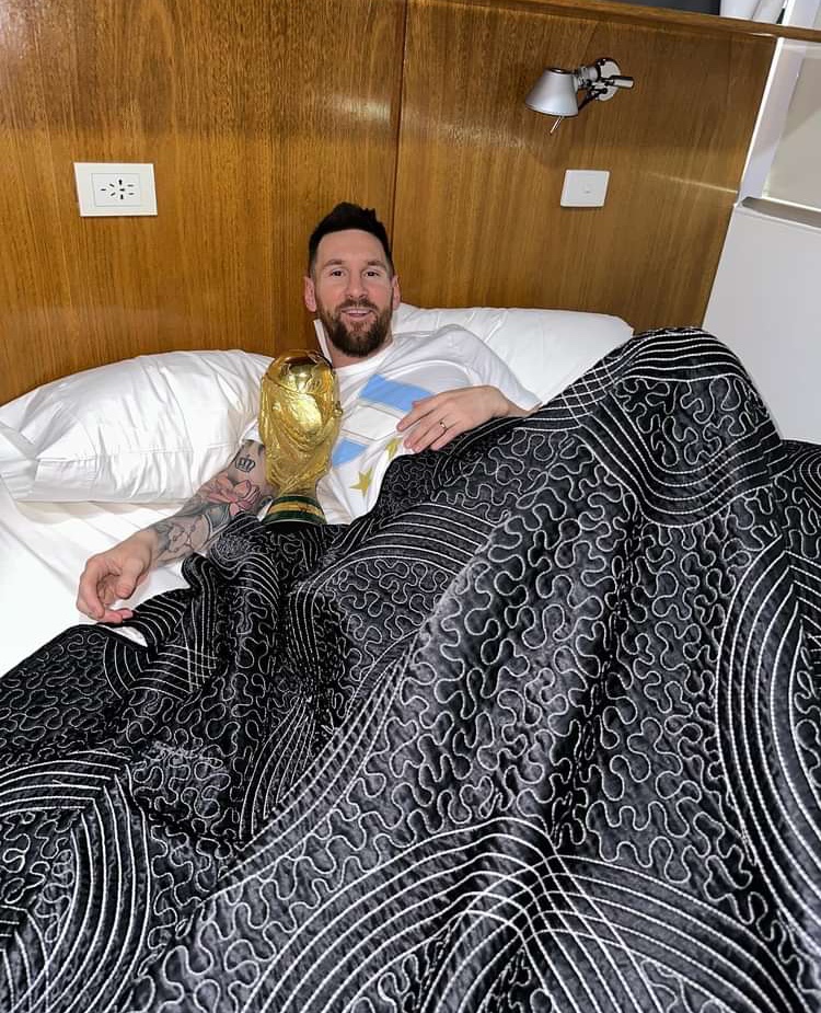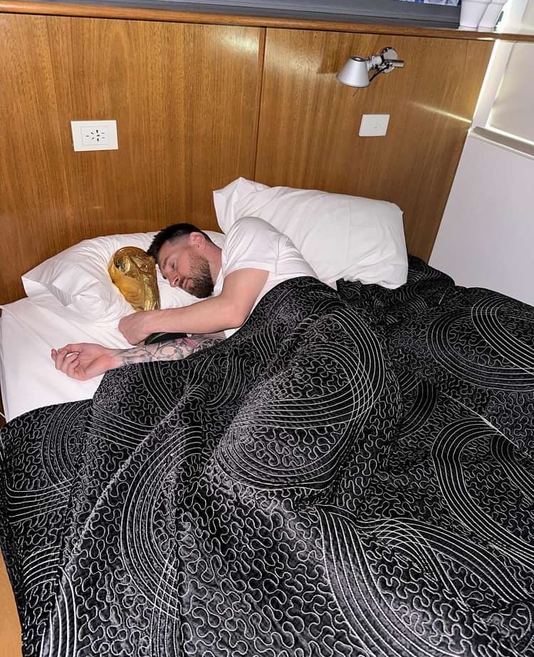 Messi wahize igikombe cy’isi bikarangira anagitwaye mukanya gato nibwo Messi ashyize amafoto hanze aryamanye n’igikombe cy’isi mu buriri.