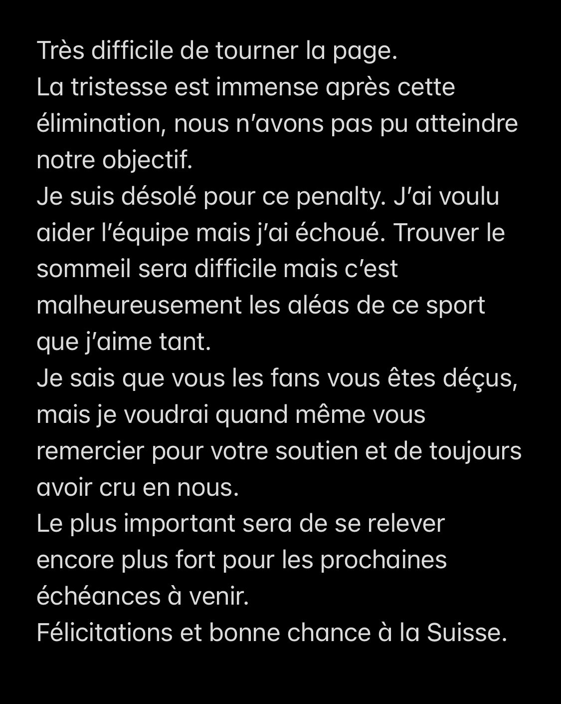 Nyuma yuko umukino urangiye, Kylian Mbappe yageneye ubutumwa abafana be ndetse n’abakunzi b’ikipe y’Ubufaransa muri rusange. Abinyujije ku rukuta rwe rwa Twitter, Kylian Mbappe yatangaje amagambo akurikira: