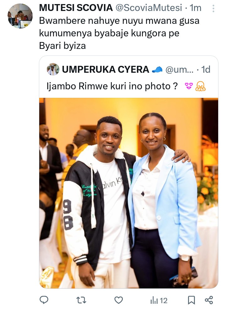 Nyuma y’aya magambo, Scovia yakozwe ku mu tima maze nawe yifashishije urukuta rwe rwa X yahoze ari Twitter, agira ati” Bwambere nahuye nuyu mwana gusa kumumenya byabaje kungora pe. Byari byiza!”