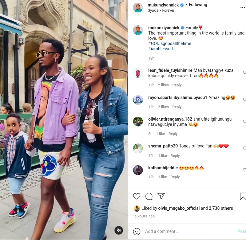 Mu mashusho yashyize kuri Instagram ye yagaragaye atemberena n’umukunzi we Iribagiza Joy n’umwana wabo w’umuhungu ,maze yongeraho amagambo akomeye.