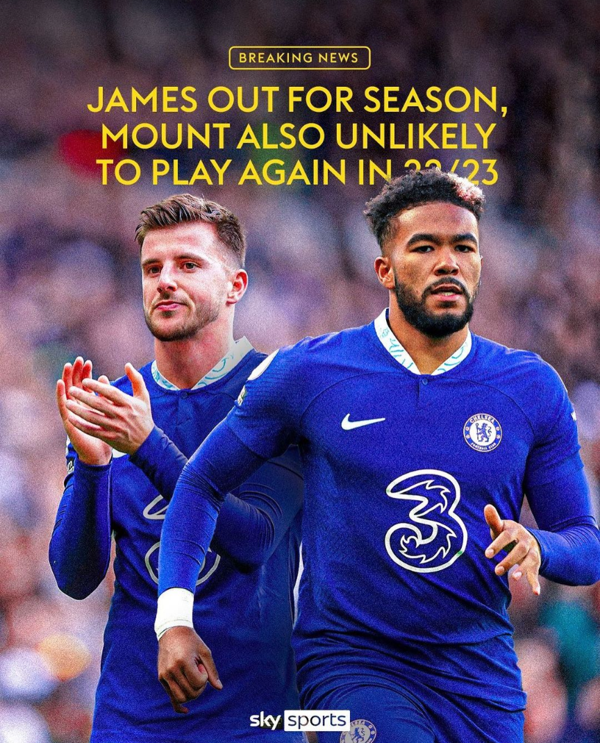 Abakinnyi babiri bagiye kumara iyi sezo yose ya  2022/2023 batagaragara mu kibuga mu ikipe ya Chelsea ni Lycée James na Mason Mount bikaba byemejwe ko uyu mwaka w’imikino batazagaragara mu kibuga.