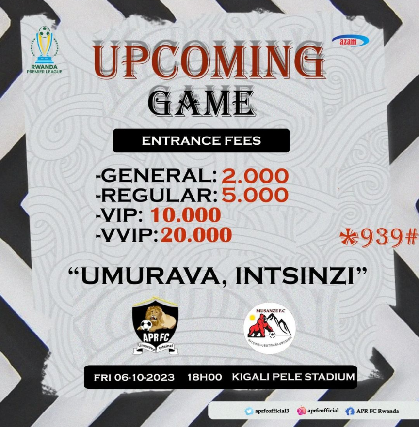 Ubuyobozi bw’ikipe ya APR FC bubinyujije ku mbuga nkoranyambaga z’iyi kipe bumaze gusaba abakunzi b’umupira w’amaguru by’umwihariko abakunzi ba APR FC kugura amatike yo kureba umukino uzahuza iyi kipe na Musanze FC iyoboye urutonde rw’agateganyo rwa shampiyona y’u Rwanda.