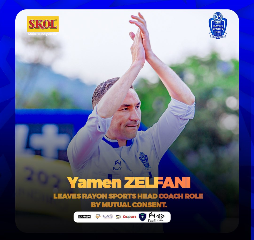 Ubuyobozi bw’ikipe ya Rayon Sports bubinyujije ku mbuga nkoranyambaga z’iyi kipe bumaze gutangaza ko uwari umutoza mukuru w’ikipe ya Rayon Sports Yamen Zelfani yamaze gutandukana n’iyi kipe.