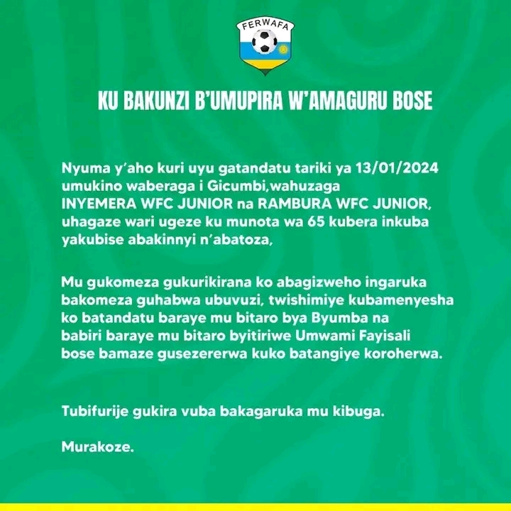 Kuri uyu wa Gatandatu tariki 13 Mutarama 2024 nibwo bamwe mu bakinnyi b’ikipe ya Rambura WFC bari mu bitaro bya Byumba muri mu karere ka Gicumbi nyuma y’uko bakubiswe n’inkuba ubwo bari mu mukino wabahuzaga na Inyemera WFC.