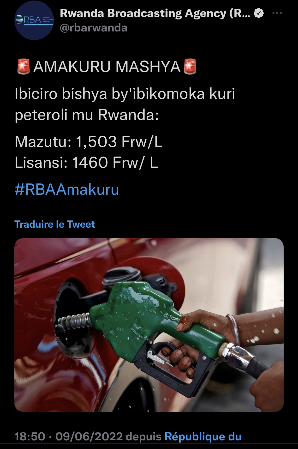 Amakuru mashya dukesha RBA ni uko ibiciro bishya by’ibikomoka kuri petroli mu Rwanda byavuguruwe mu buryo bukurikira: