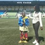 Umukecuru Madeleine umufana ukomeye wa Mukura VS n’Amavubi yamaze kugera muri sitade hakiri kare yisize amarange agiye gufana Amavubi