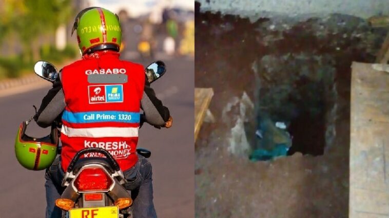 Amakuru y’uyu mwobo yamenyekanye ubwo umumotari yamutwaraga, yamugeza iwe “ngo agashaka kumuniga ngo amujugunye muri uwo mwobo” undi amurusha imbaraga aramucika, agenda atabazaba abaturage.