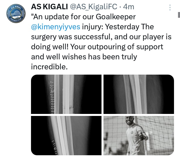 Nyuma y’umunsi umwe umunyezamu Kimenyi Yves wa AS Kigali agize imvune ikomeye cyane amagufwa y’agatsitsino agatandukana, ubu yamaze kubagwa.
