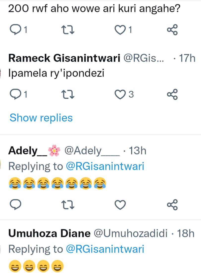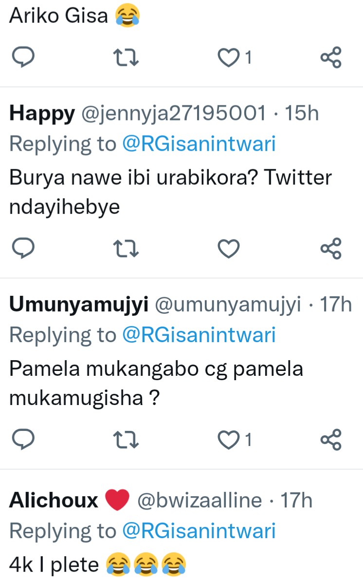 Ayo mafoto yatigishije imbuga nkoranyambaga kugeza naho bari kuyagereranya n’amagi. Ukoresha Twitter mu mazina ya Remerck Gishwati yasohoye amafoto abari imwe ya Pamela n’indi y’igi, ni uko abaza abantu ati: “Amapamela ari kugura angahe aho iwanyu?”