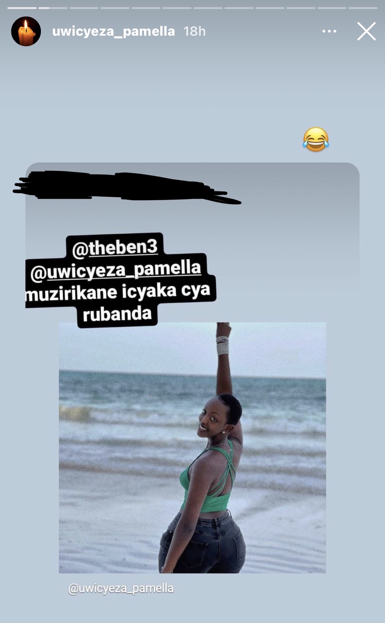 Umwe mu bafana ba Miss Pamella wabonye iyi foto yasabye The Ben na Miss Pamella ko batanga agacupa kuri rubanda kugirango babicire icyaka. Uyu mufana yagize ati « @theben3 @uwicyeza_pamella muzirikane icyaka cya rubanda ». Miss Pamella yahise amusubiza akoresheje akarango ko guseka (😂).