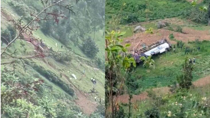 Amashusho ari kuriza benshi! Bisi nini itwara abagenzi yavaga i Kigali yerekeza i Musanze yakoze impanuka iteye ubwoba aho yarenze umuhanda imanuka ku musozi muremure igera mu kabande – VIDEwO