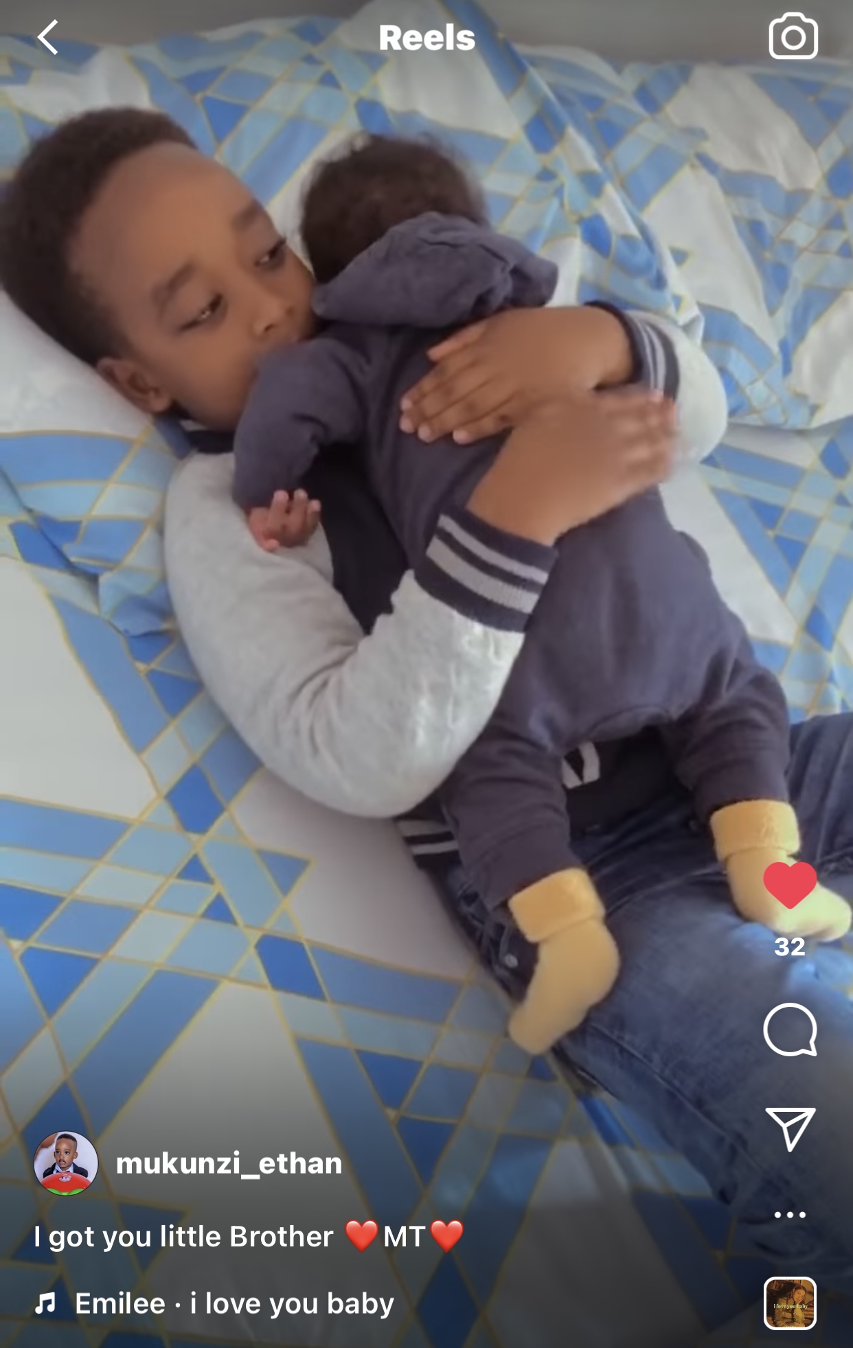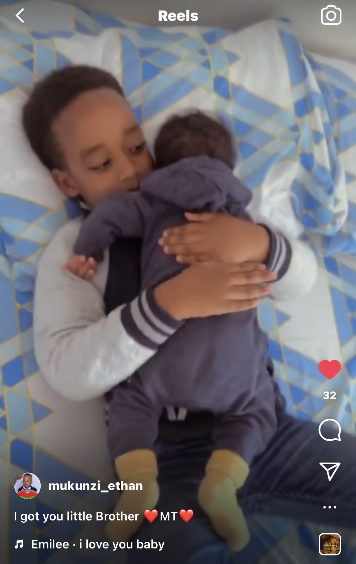 Ku rubuga rwa instagram hasakajwe amashusho agaragaza abana ba Yannick Mukunzi aho bari bari kumwe. Nkuko amashusho abigaragaza, Ethan Mukunzi, imfura ya Yannick Mukunzi yari ateruye murumuna we agaragaza ko amwishimiye.