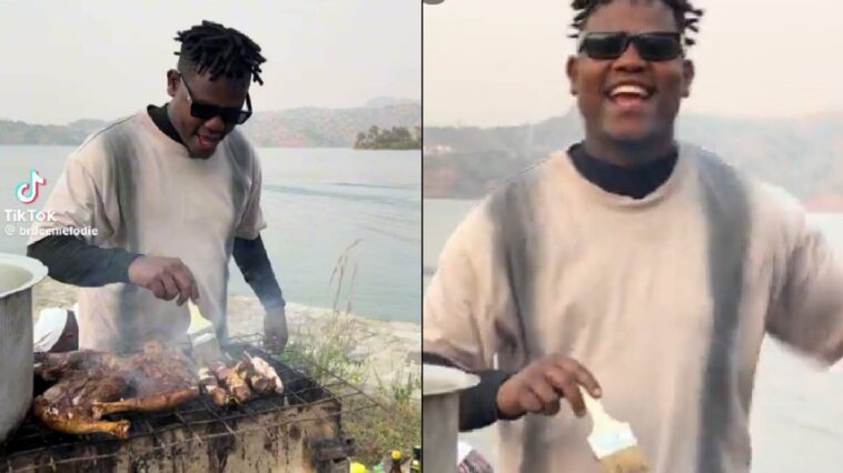 Ni amashusho aho Bruce Melodie aba ari kotsa inyama ku mazi, aho ziba zigeze aho zihiye.