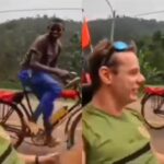 Amashusho ateye ubwuzu y’umuzungu aganira n’umunyarwanda mu rurimi rw’icyongereza barimo banyonga igare akomeje kwishimirwa na benshi