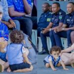 Umuzungu wihebeye Rayon Sports akomeje guca ibintu nyuma yo kujya gufana ikipe ye yajyanye n’umwana we muto ukambakamba [AMAFOTO]