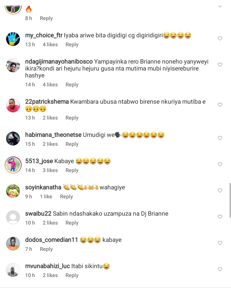 Abakoresha imbaga nkoranyambaga by’umwihariko instagram batunguwe n’imyamabarire ya Dj Brianne wagaragaye avanga umuziki ari nako abyina ariko yambaye isutiye gusa inda yose iri hanze .Mu mashusho Dj Brianne yari kumwe n’undi musore na we wari wakuyemo ishati.