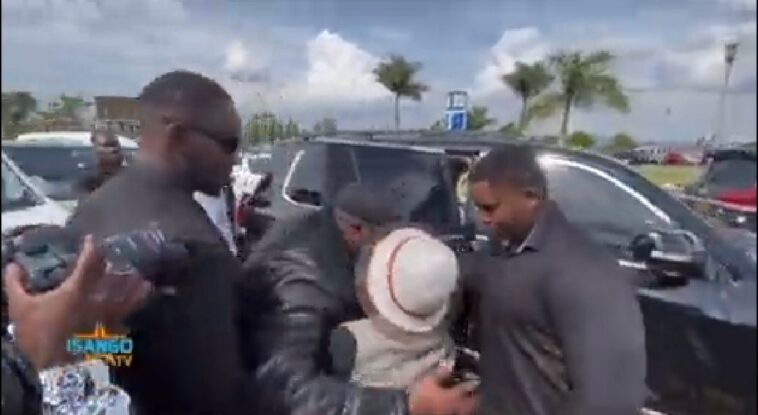 Amashusho ya Valentine wamenyekanye nka Dorimbogo yagiye kwakira umuhanzi Mugisha Benjamin uzwi nka The Ben ku kibuga k’indege cya Kigali i Kanombe.
