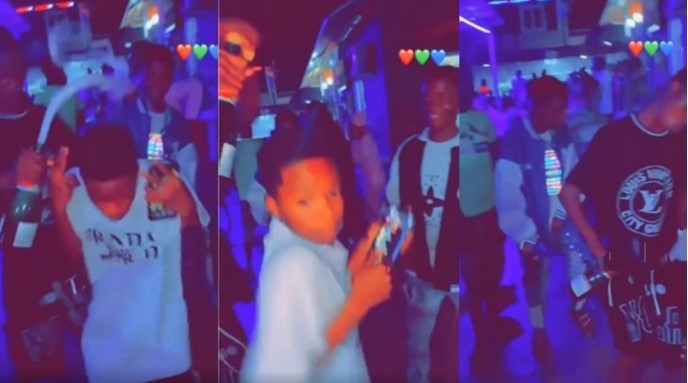 Itsinda ry’abana batujuje imyaka y’umukure bagaragaje bari mu birori by’ijoro ubusanzwe bijyamo abantu bakuru ,aho bagaragaye bapfundura inzoga zihenze.