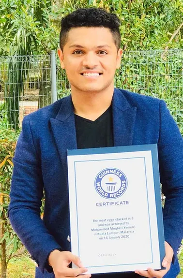 Uyu mugabo wo muri Yemen yakoreye aka gashya muri Turkiya mu marushanwa.Uyu avuga ko ibyo yakoze kugirango agerekeranye amagi ane rimwe hejuru y’irindi bitoroshye nkuko abantu babibona.Avuga ko gukora biriya bisaba kwihangana cyane kuko amagi ari ikintu gihita kimeneka.Uyu mugabo yahawe n’igihembo cya Guinness World Records gihabwa abantu baciye uduhigo ku isi.