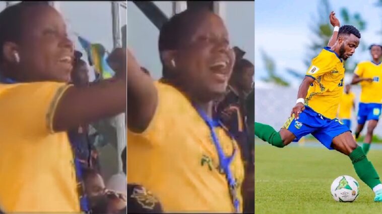 Amashusho y’umunyamakuru Faustinho Simbigarukaho wahagurutse mu bafana yishimira itsinzi ubwo Amavubi yigishaga isomo rya ruhago ikipe y’igihugu ya Africa Y’Epfo