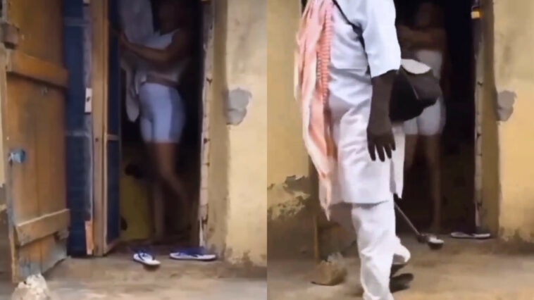 Ku mbuga nkoranyambaga hakomeje gukwirakwira amashusho y’umusaza bigaragara ko adashahe cyane, avuye mu nzu y’umukobwa.