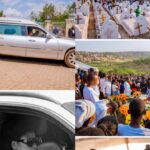 “Umugeni aratashye” Abari baje gusezera kuri Pastor Theogene Niyonshuti birutse inyuma y’imodoka yari itwaye umubiri we baririmba abandi bakoma amashyi (VIDEWO)