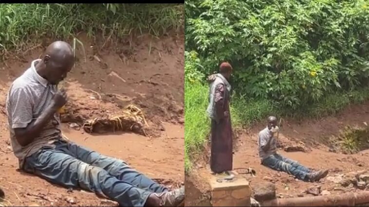 Amashusho y’uwahoze ari umunyonzi, nyuma yuko igare rye ritwawe na Police yahisemo kwinywera kore ajya kwiyahura muri ruhurura urupfu ruramwanga – VIDEWO