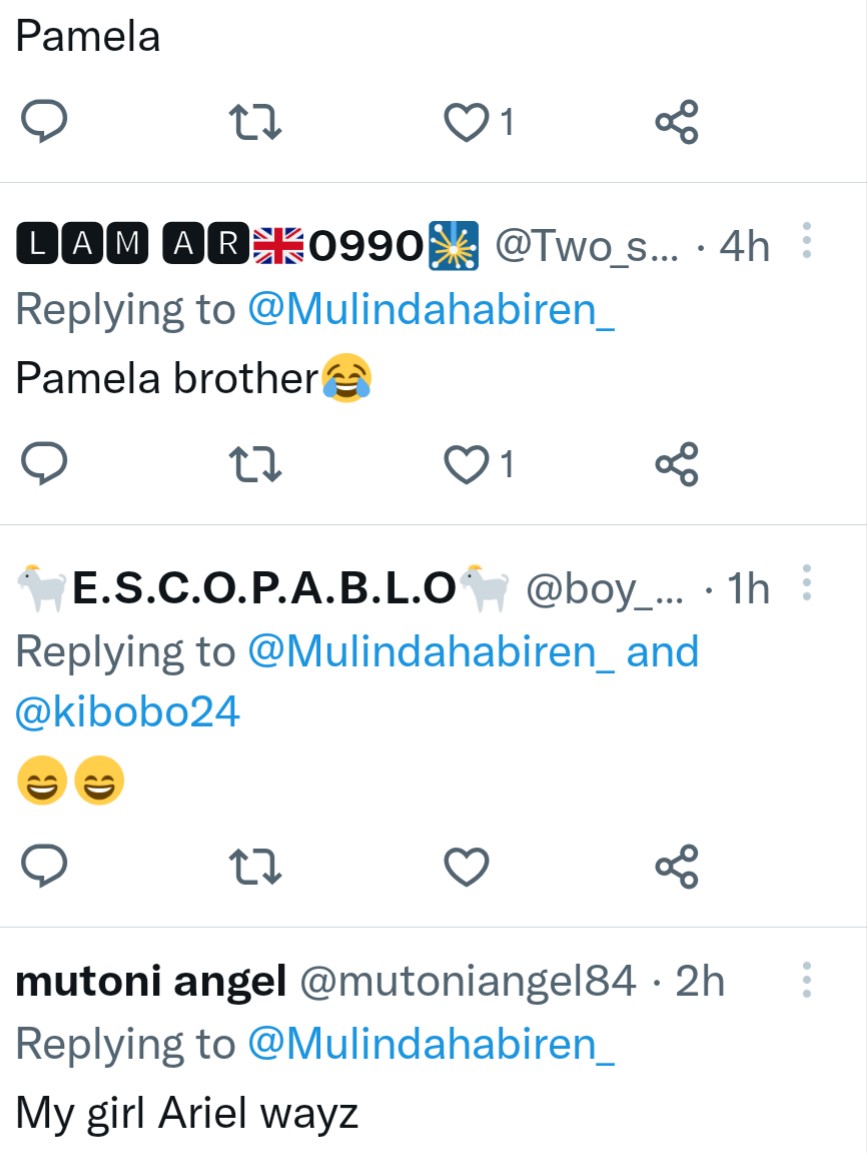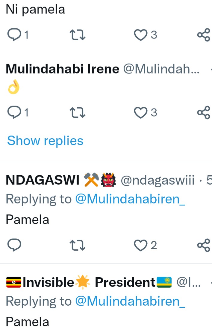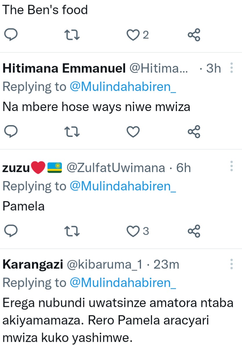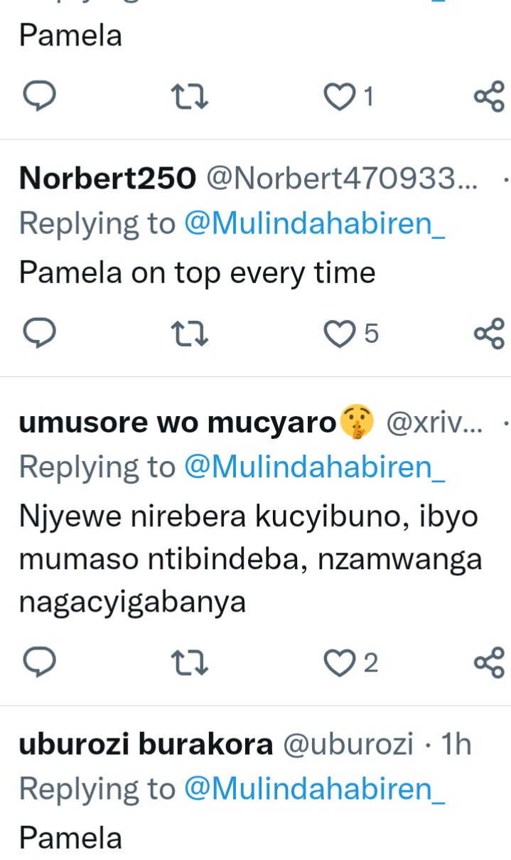 Umunyamakuru Irene Murindahabi, yifashishije urukuta rwe rwa Twitter maze asaba abantu gutora uhiga undi hagati ya Miss Pamela na Ariel Wayz.