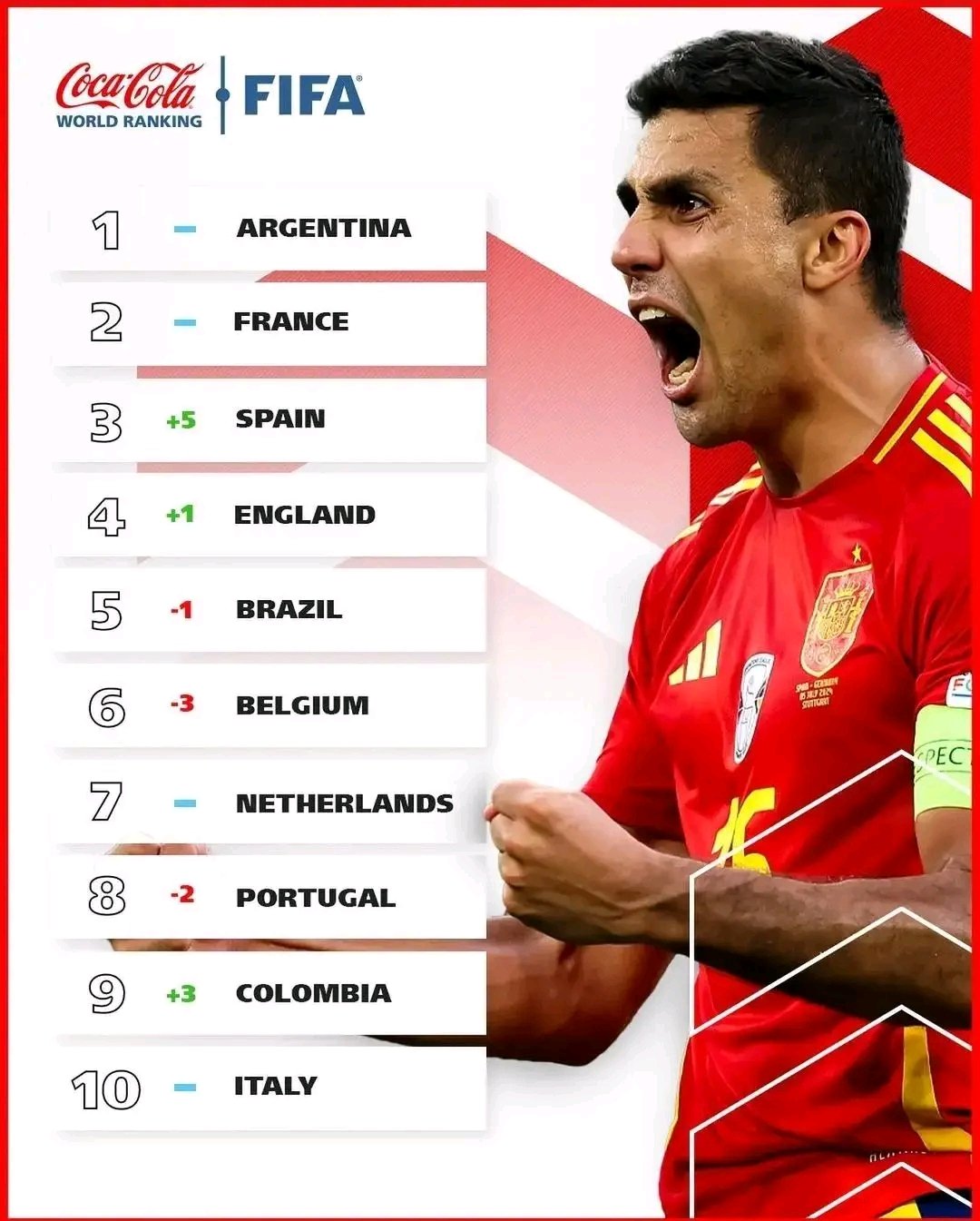 Urutonde rwasotse kuri uyu wa Kane tariki 18 Nyakanga 2024, rwasize u Rwanda rugumye ku mwanya rariho naho Espagne iherutse kwegukana Euro2024 yo yazamutse imyanya 5.