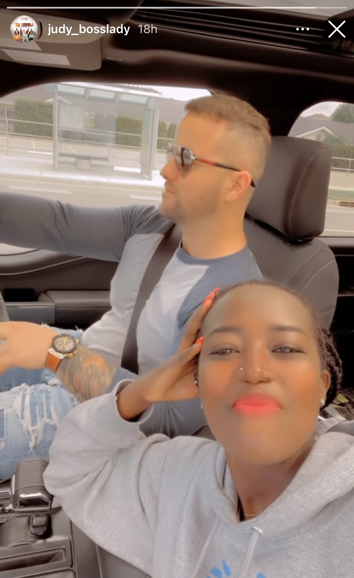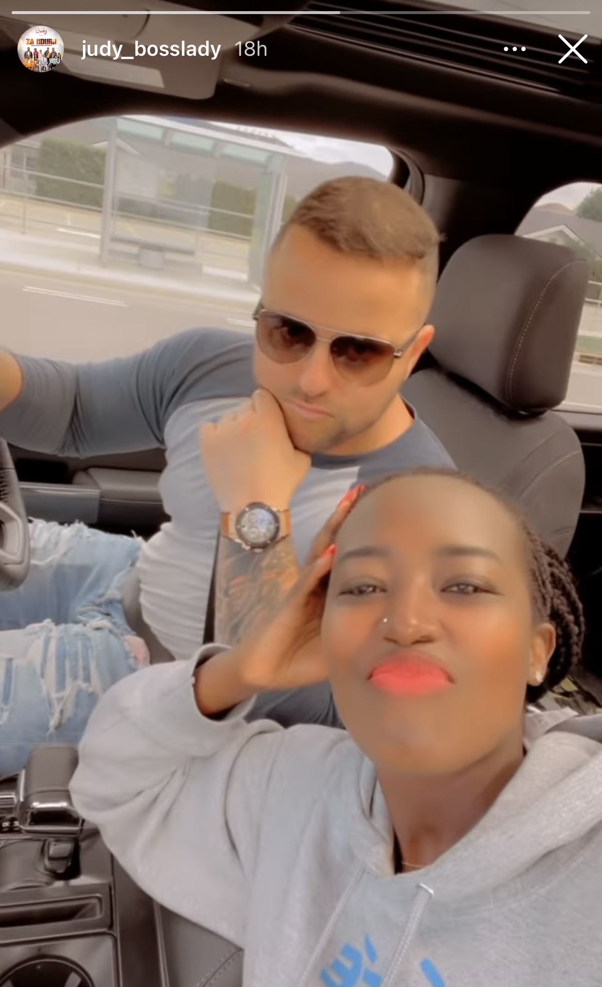 Judith abinyujije kuri story ya instagram ye yashyize hanze andi mashusho ye ari kumwe n’umuzungu barimo gukundana muri iyi minsi aho bari bari kumwe mu modoka bigaragara ko akanyamuneza ari kose.