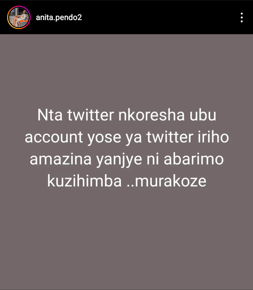 Abinyujije kurukuta rwe rwa Instagram yanditseho agira ati:”Nta Twitter nkoresha ubu account yose mu bonaho amazina yange ni abarimo kuzihimba” asoza agira ati “murakoze”.