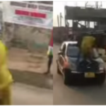 Umusore wiyemera yihaye ibyo gusimbuka imodoka igenda ahava imbwa yiruka(Video)