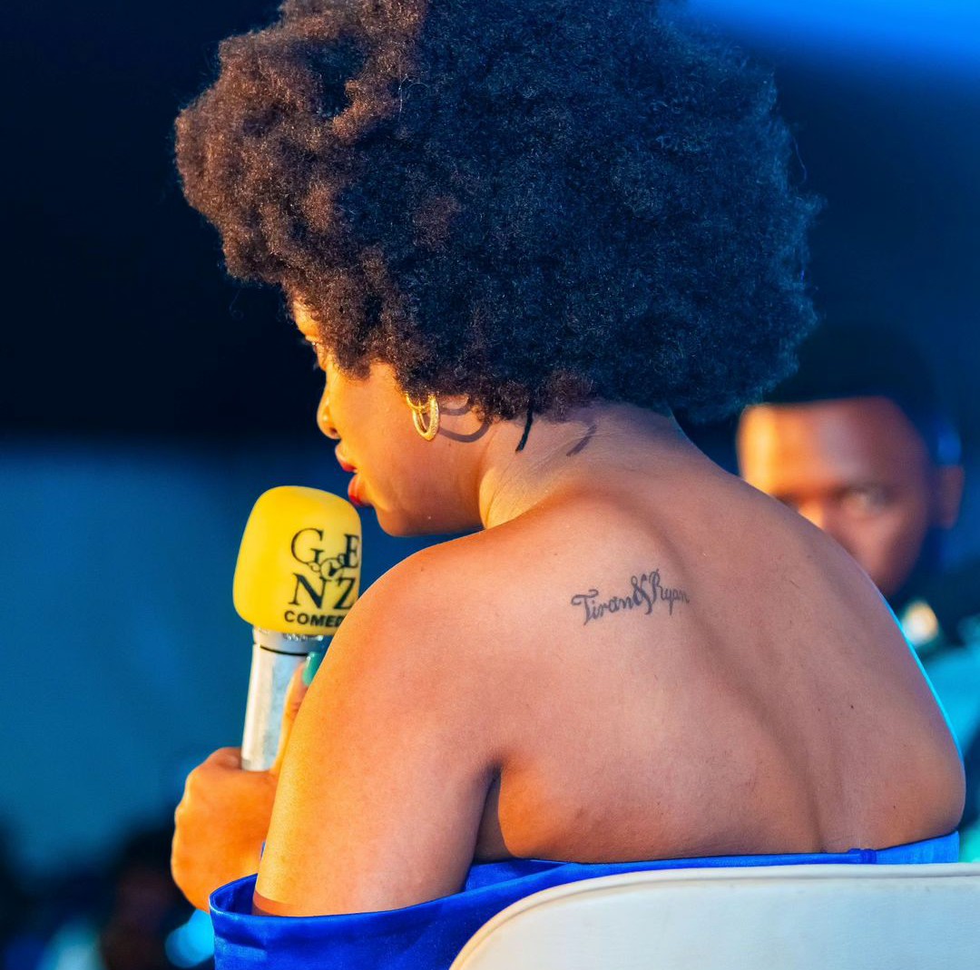 Ubwo yari yitabiriye igitaramo cya Gen-Z comedy, umunyamakuru Anita Pendo yerekanye tattoo iri mu mugongo we.