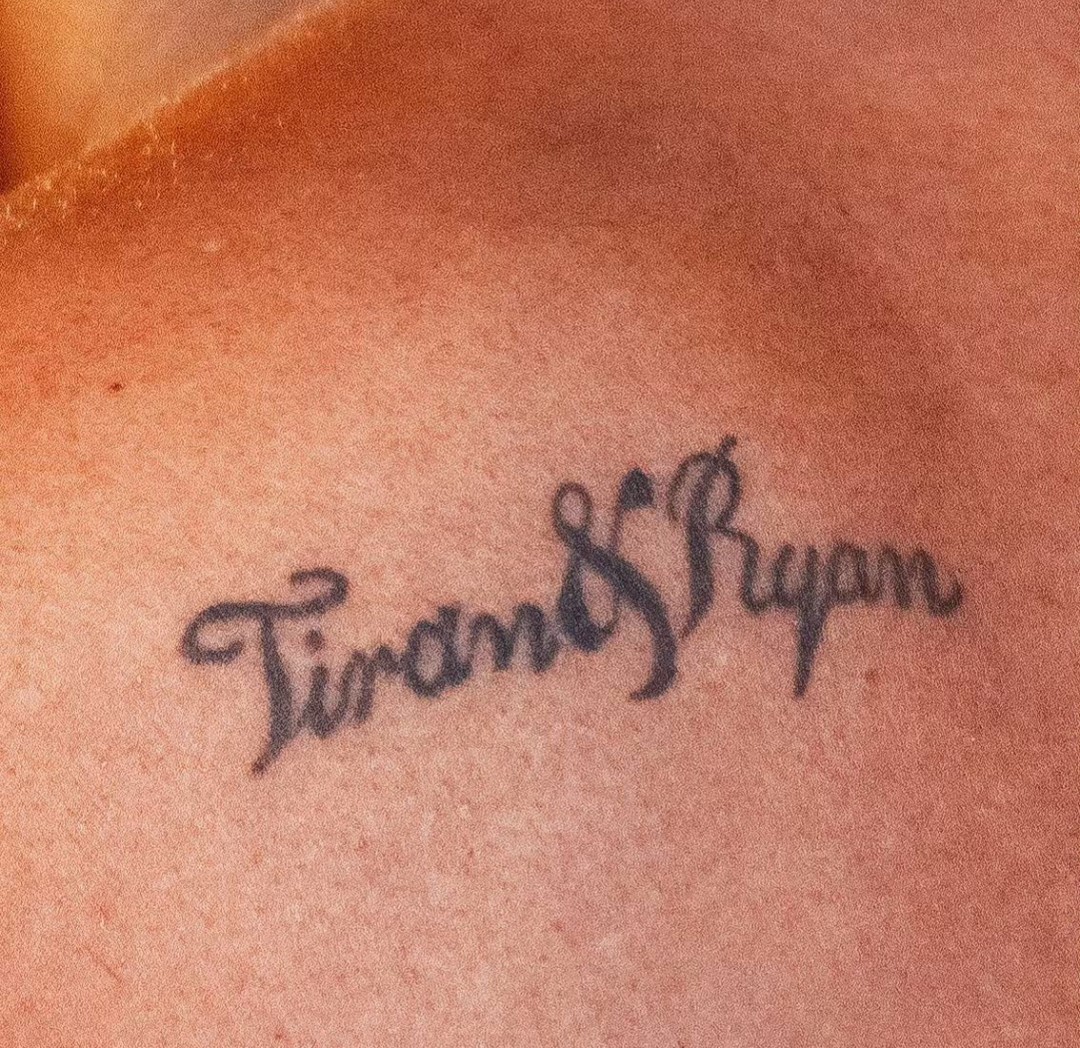 Iyi tattoo iri mu mazina y’abana be babiri, Tiran na Bryan.