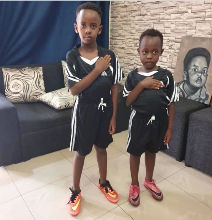 Umushyushyarugamba akanaba umunyamakuru kuri RBA Anita Pendo yishushanyije ku mubiri we amazina y’abahungu be babiri.