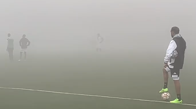 Mu mashusho yagiye ahagarara yerekana abakinnyi ba Apr Fc bari gukora imyitozo idasanzwe mu muyaga ndetse n’imvura iri kujojoba.