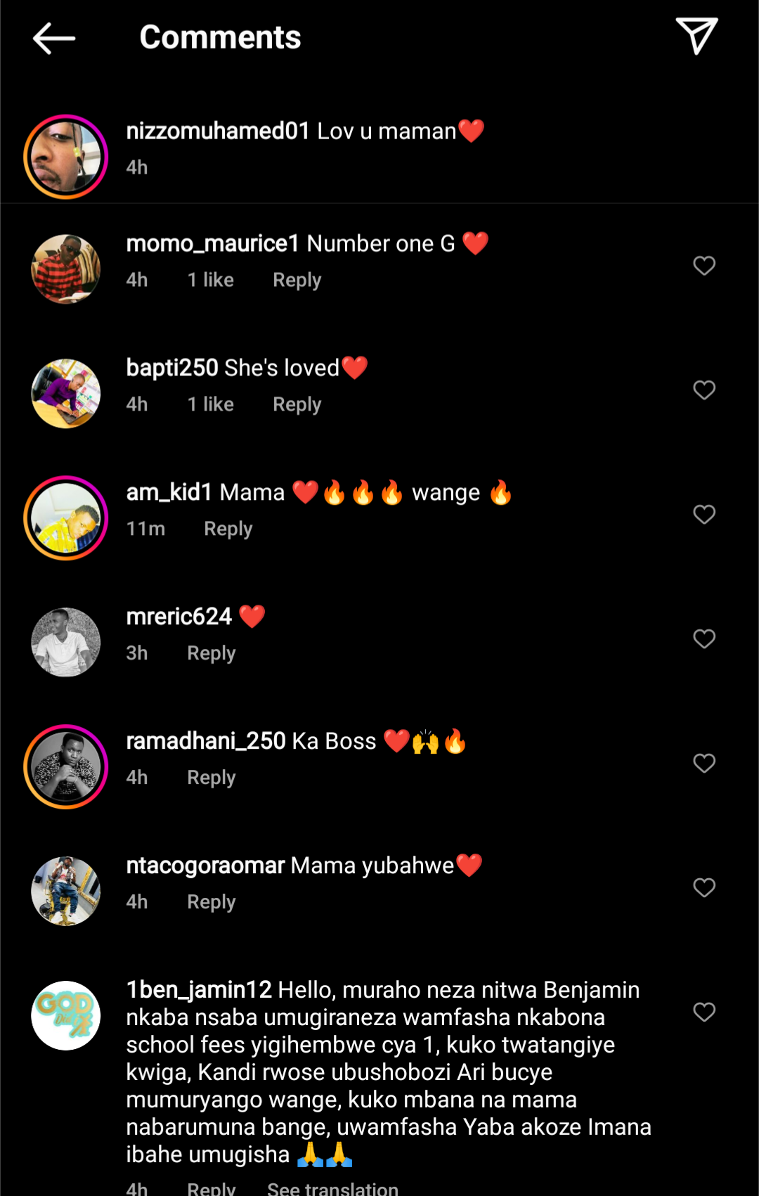 Abinyujije kurukuta rwe rwa Instagram yashyizeho ifoto y’umubyeyi we maze arenzaho ijambo ati:”Ndagukunda mama”