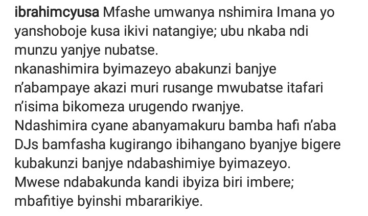 Umuhanzi umaze kumenyekana cyane mu muziki gakondo, Cyusa Ibrahim ari mu bashima Imana bitewe n’ibyo yabakoreye.