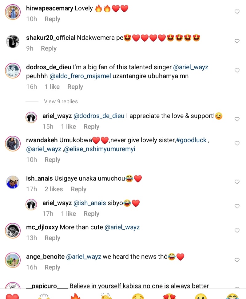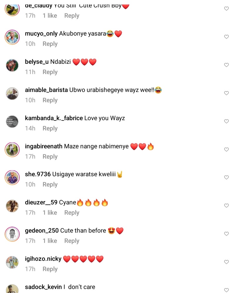 Nyuma abafana benshi bahise bamusubiza ko asigaye ari mwiza koko ,bamwereka n’umunyetso twimitima ,hari uwamubajije ati”urabishegeye se Wayz we?”