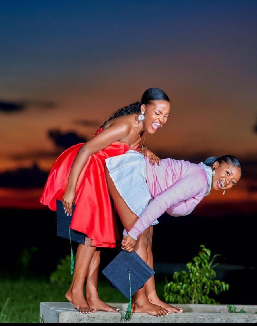 Abakoresha imbuga nkoranyambaga zitandukanye bakomeje gucika ururondogoro nyuma yo kubona ifoto y’abakobwa babiri basoje kaminuza bagaragaye umwe aheneye mugenzi we, uw’imbere ijipo yazamutse.