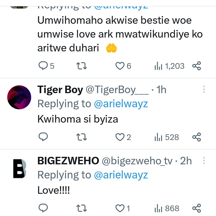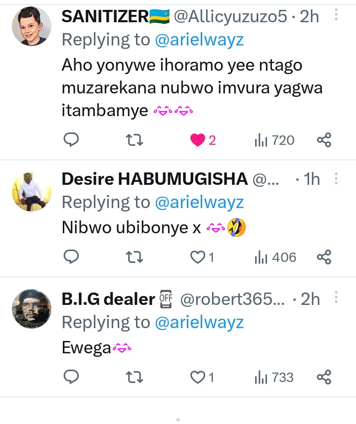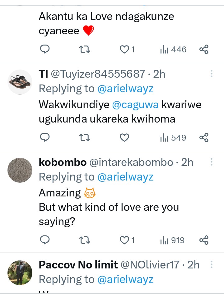 Gusa Ariel Wayz we agiye kumusubiza yagize ati “Urakoze Rukundo”.