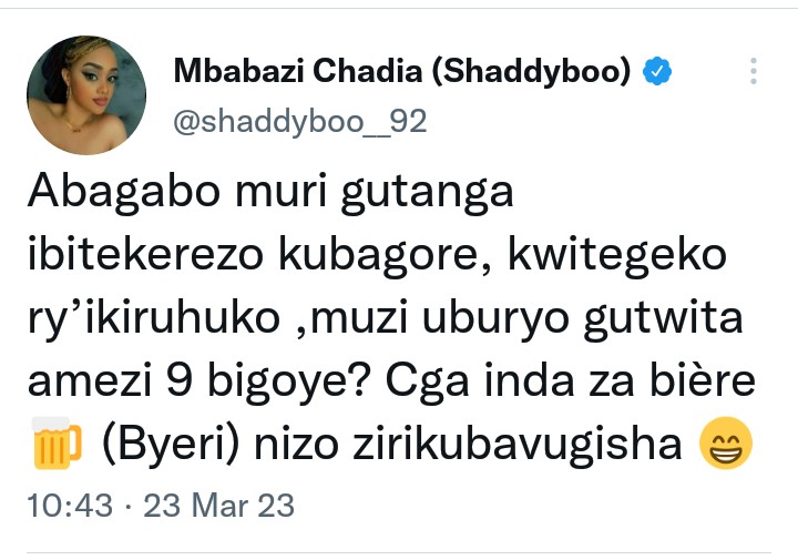 “Ariko muzi gutwita amezi 9 uburyo bivuna cyangwa inda za byeri nizo zibongoza” Shaddyboo yihaye abagabo ku mbuga nkoranyambaga